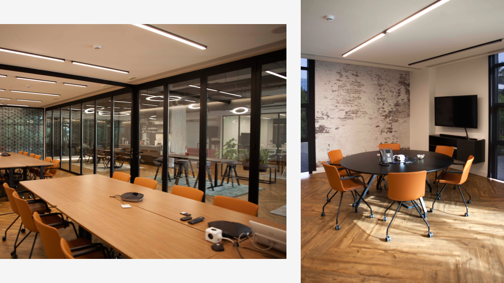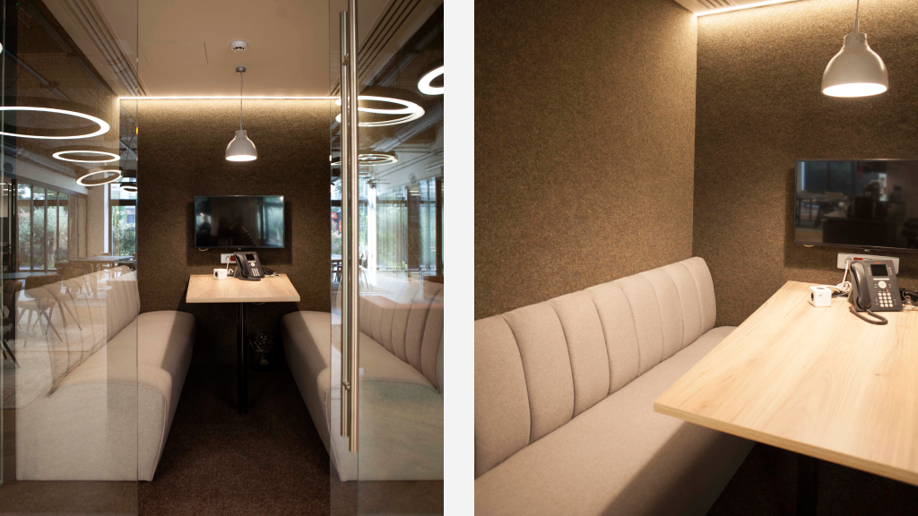 Interior Design & Fit Out Project for AbbVie’s extension to its offices. Meeting rooms, collaboration space, booths for small meetings or focused work, a cafeteria. Space designed to foster impromptu meetings.